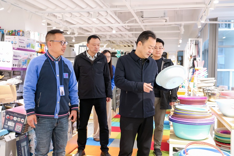 12月12日,义乌市场监督管理局局长楼小东调研义乌运营总部,总裁办资深董事茆桢、人力资源部董事经理陈枭龙接待。