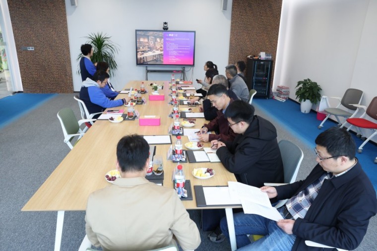 虞骏书记一行首先参观了集团样品间,随后召开座谈会。