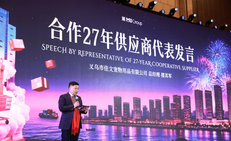 义乌市佳文宠物用品有限公司 总经理 楼其军,以一段跨越27年的合作故事展开。从几个货柜的发圈订单起步,凯越不仅带给他“人生中最大的一笔生意”,更引领他从“小作坊”走向规范经营,成功转型宠物用品。楼总见证凯越从几人团队到二十亿美元规模的巨变,共同度过疫情、关税战等危机。最低谷时,公司再次伸出援手,对接客户。他的讲述朴素而深情,诠释了我们与供应商之间的“陪伴式成长”和深厚情谊。